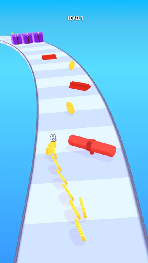 Rolling coins on the track !! Dodge the obstacles and keep rolling. Collect other coins on the road and make a long tail !! Be aware of moving obstacles, they might catch you !! Can you collect them all ?