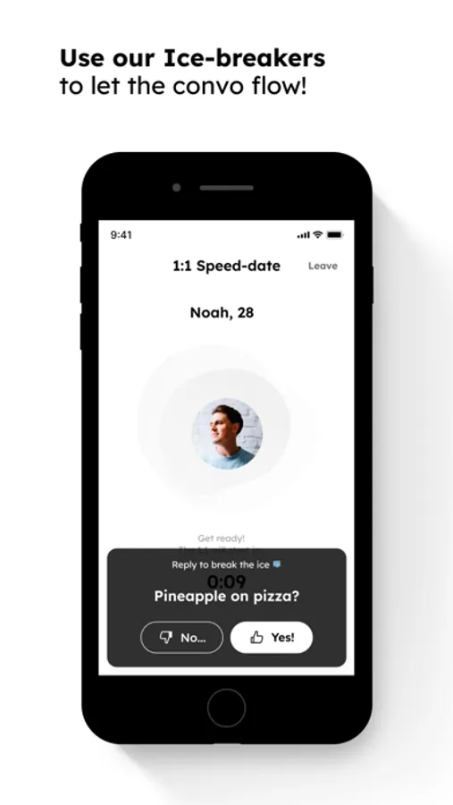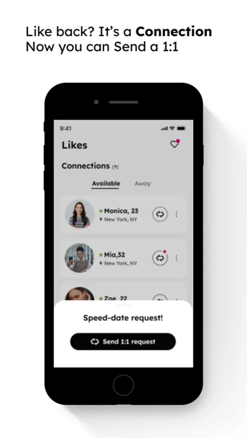 When you hear a SWITCH Note that you like on your homescreen, you’ll have the opportunity to send a 1:1 request for a 3-minute speed date with them, with built-in ice-breakers and conversation drivers (no awkward silences, please!), and see if sparks fly. If they’re not online at the moment, save their profile for a chance to connect later.