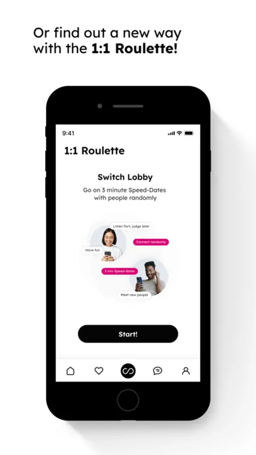 Combine the convenience of a phone conversation with innovative features that create your own virtual speed-dating event, right in the palm of your hand. Genuine connections happen naturally when we have the chance to talk to each other and communicate on a human level. So why not make that a part of the online-dating experience? Our survey shows that 77.5% of people believe having a live conversation before seeing a person’s profile would help them build stronger connections. SWITCH helps you make those connections - on your time, in real time.