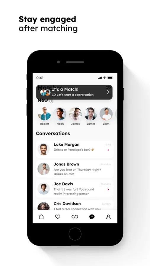 These aren’t your normal profiles, with vague bios, random group photos (which one are they??), and scam profiles as every other option. Instead, you’ll be able to scroll through a timeline of profiles with SWITCH Notes attached, with some of the details hidden to encourage you to learn more about them in a live conversation first.