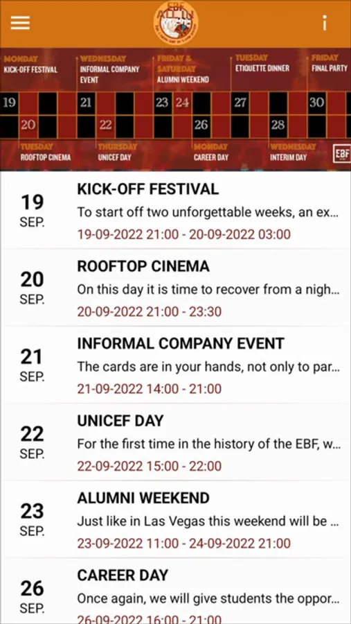 The Economics and Business Faculty association (EBF) is celebrating their 15th anniversary. Therefore, you will have the chance to enjoy several fun activities to celebrate this unique anniversary from the 19th till the 30th of September.
