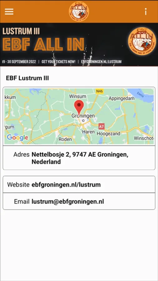This app is developed to give you a clear overview of the programme and so that you can access all the important information regarding the events easily. Besides the programme of events you will also be able to find the merchandise and pictures of events in this app. Make sure to download this app if you want to be up to date!