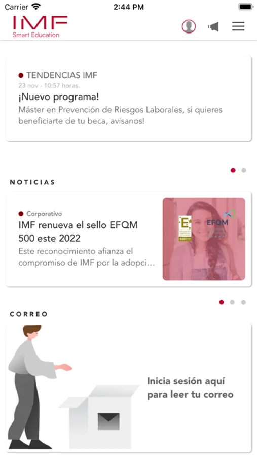 La aplicación móvil de IMF Smart Education permite a sus estudiantes consultar toda su información académica de una forma rápida y ágil, así como acceder a las últimas noticias y a los próximos eventos.
