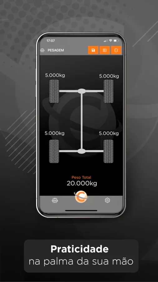 The app displays the car's weighing information, with total weight, weight per axle and the weight of each platform separately, in real time.