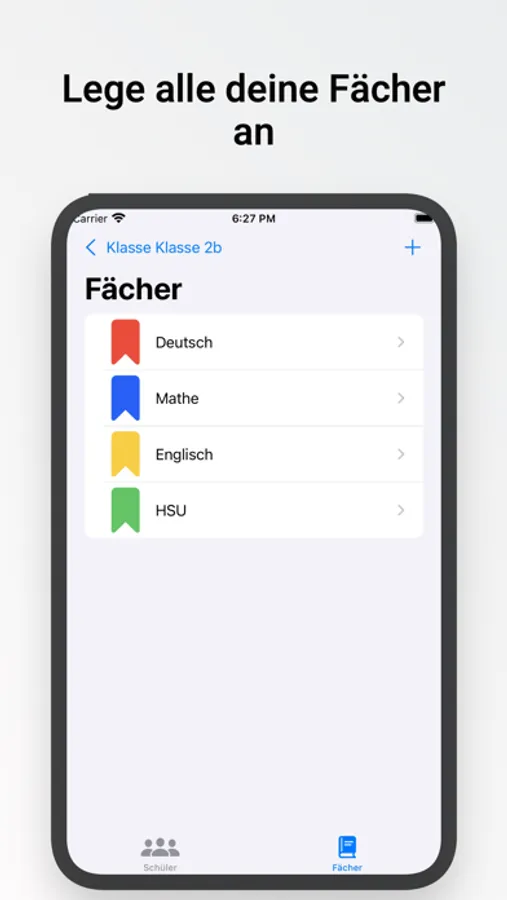 - Lege für jede Klasse die Fächer an, die du unterrichtest