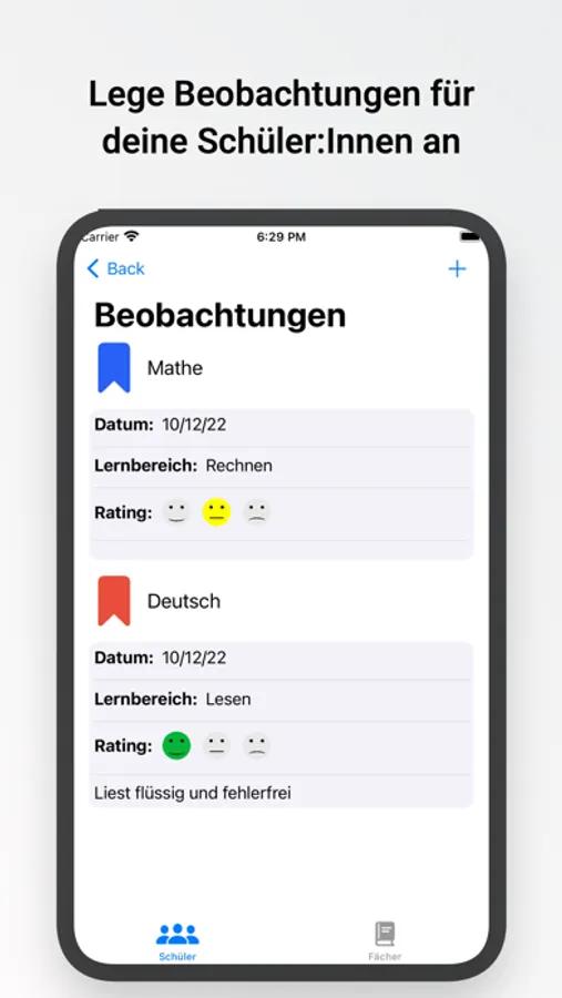 - Lege für jedes Fach deine Lernbereiche an, für die du Beobachtungen erstellen möchtest