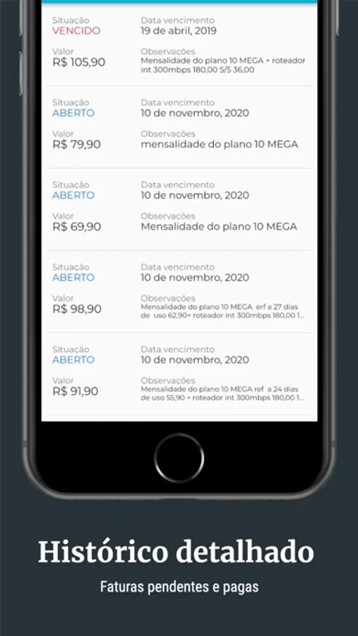 - notificações sobre sua conexão e boletos
