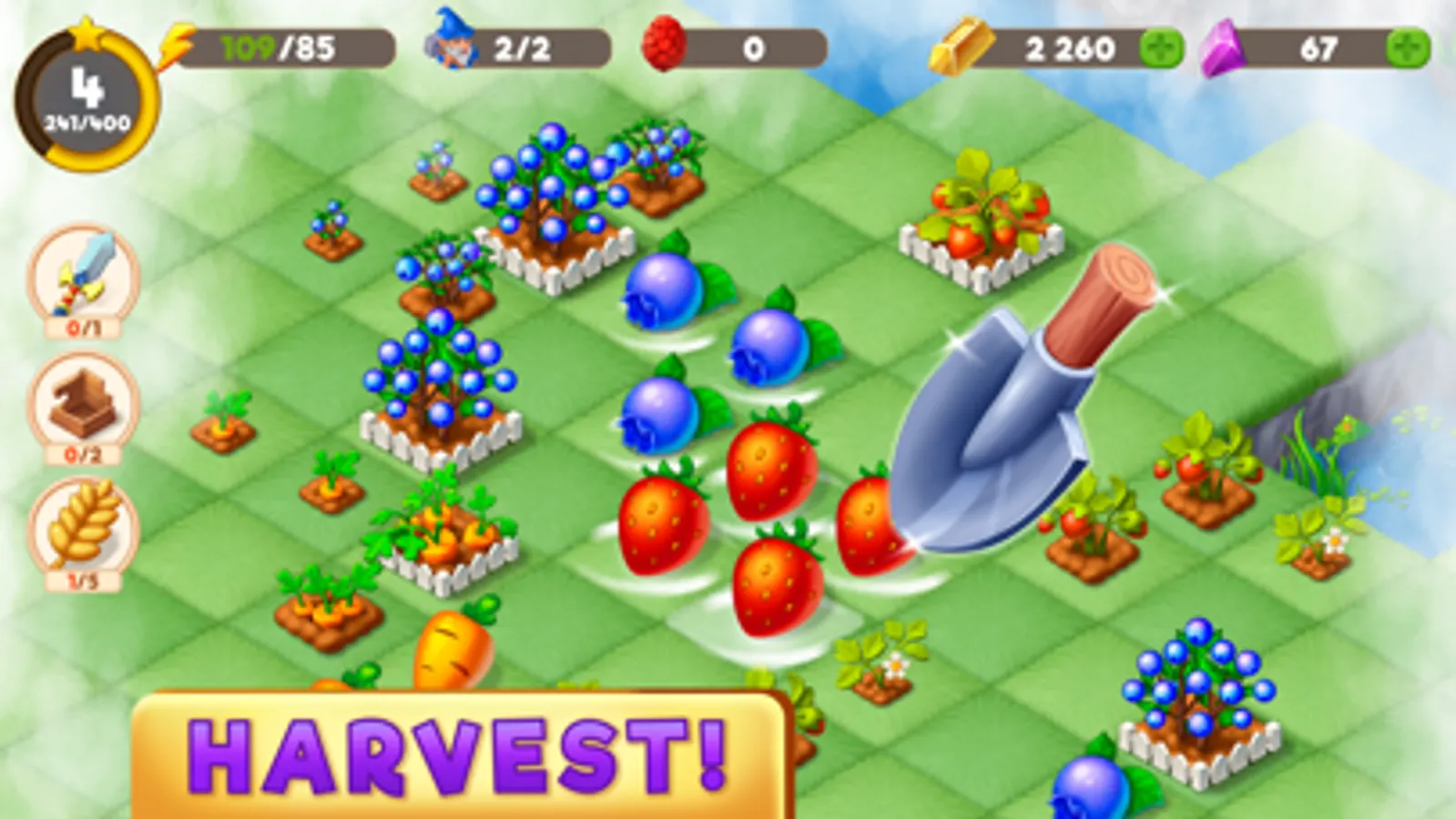 Grow crops and collect resources, design and develop your own kingdom! Matching and combining 3 or more items causes the evolution of each of them. On your game path you may meet dragons and monsters, but remember that the main task is to merge objects in order to develop your lands! The game has different characters and each of them has its own unique and exciting story! They will help you raise an population, expand your possessions and turn the kingdom into a prosperous state.