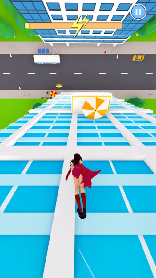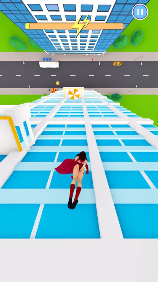 Avoid and dodge obstacles near the building, and speed up as you go down. The faster you are, the bigger chaos you'll cause when you land. Crash the ground with your stylish superhero landing!