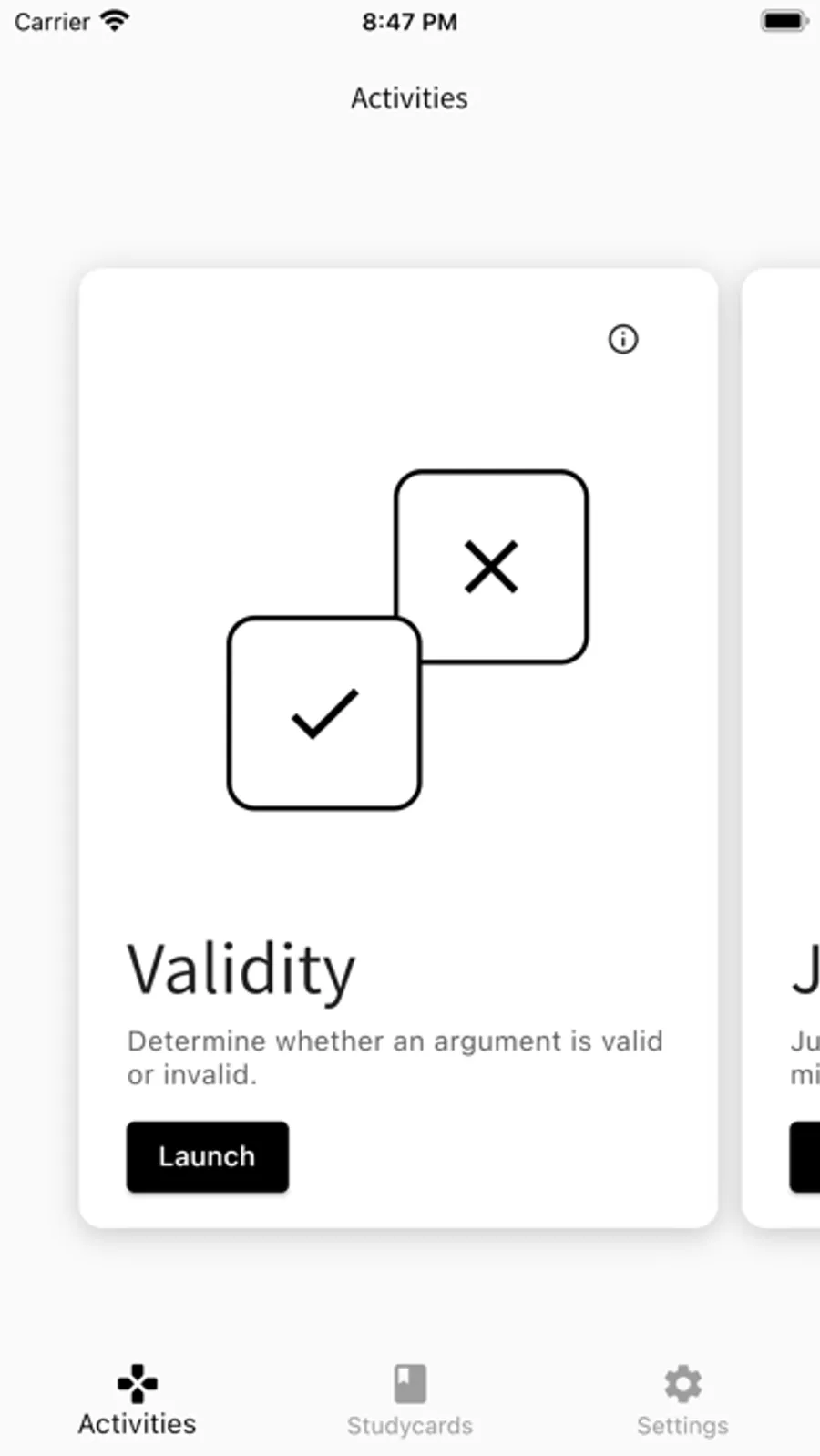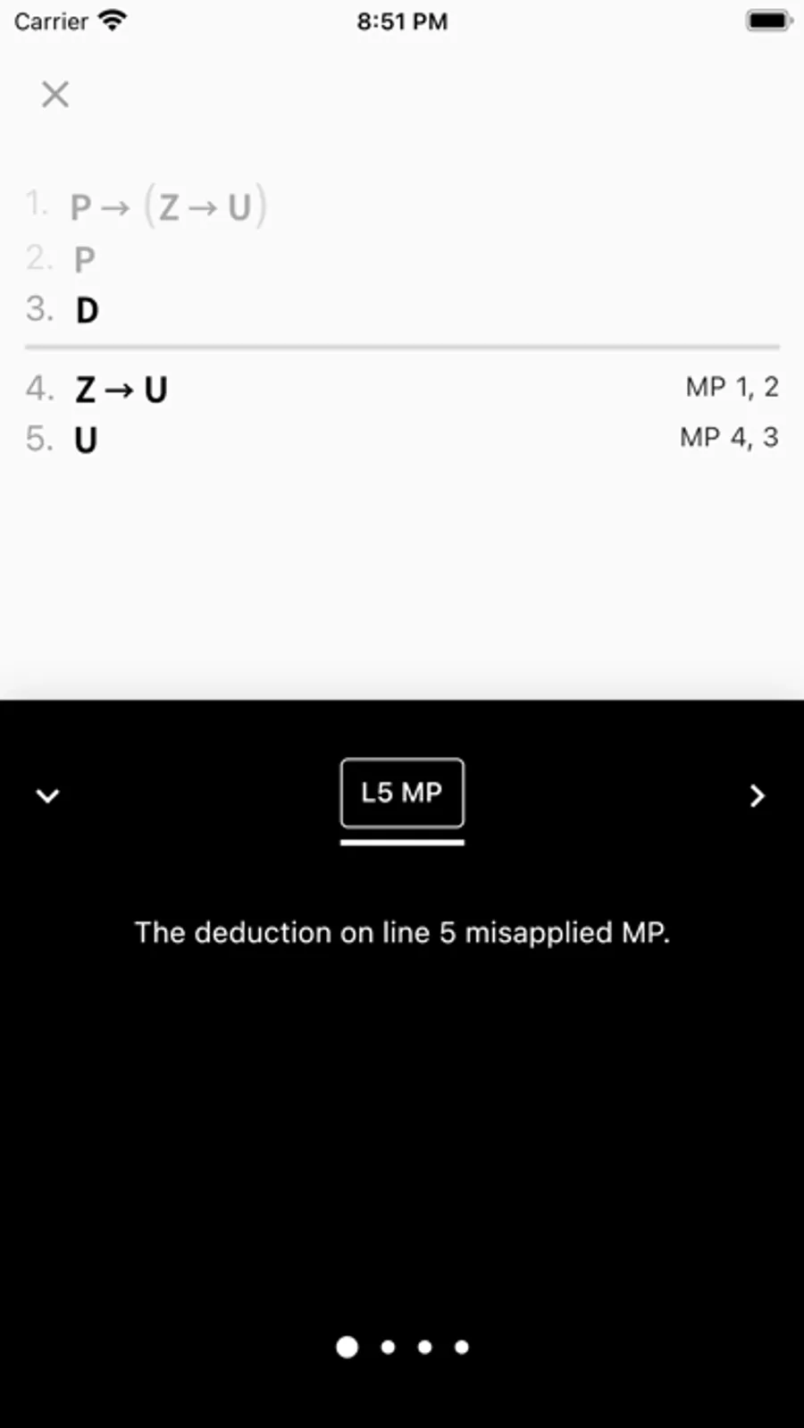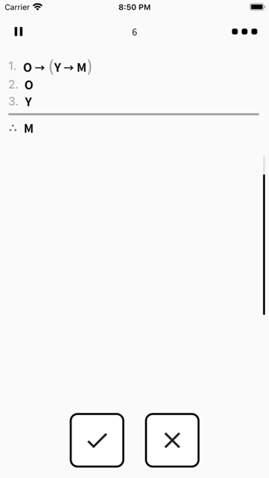1. Validity: Validity sneakily uses repetition to teach the student the rules of inference. Let’s face it, repetition works effectively but it can often feel like a chore. The way Validity gives you the upside of repetition while minimizing its downside is by introducing you to novel arguments that have already been “solved”. You then have to determine if the solution applied every step correctly. Repetition is at the heart of skill-building, but to minimize the feeling of “wax on and wax off” until the student is bored and frustrated, the stimulus is novel and the part that feels most like work is already laid out for you. All you have to do is determine if the steps were applied correctly.
