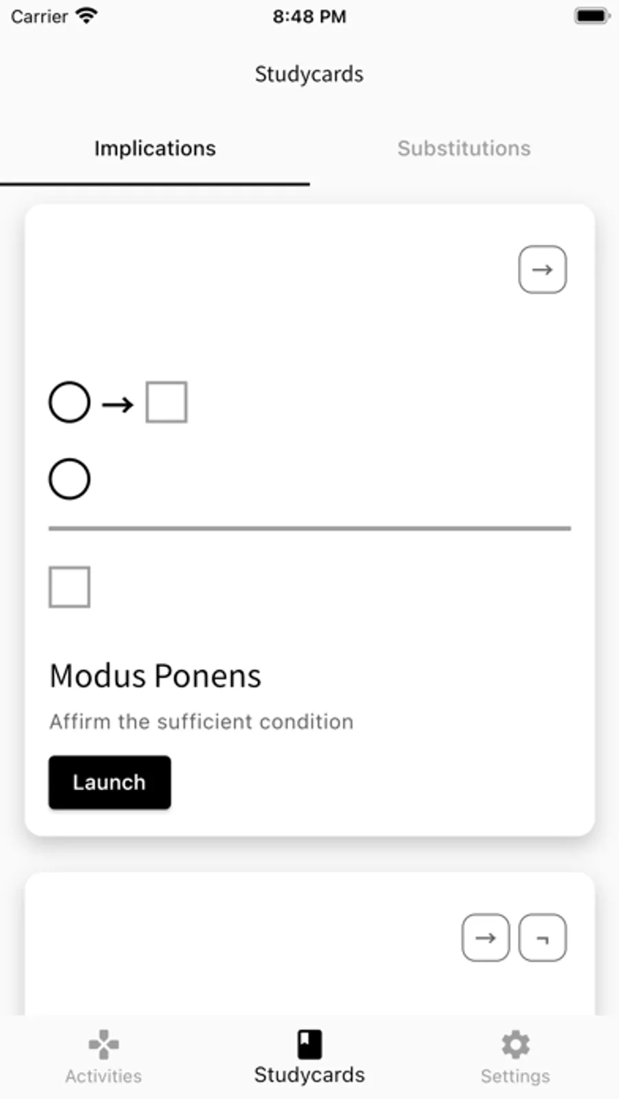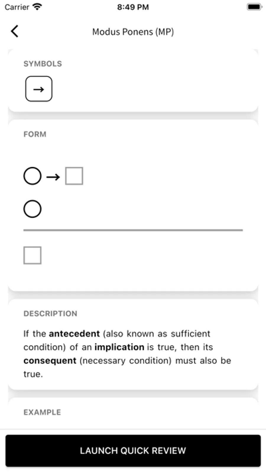 With Symbols, learning natural deduction and the rules of inference can be done on your mobile device. Whether you are completely new to the study of logic or want a refresher on the rules of inference, our Studycards help you learn and review; and our Activities help you improve and practice your skills.