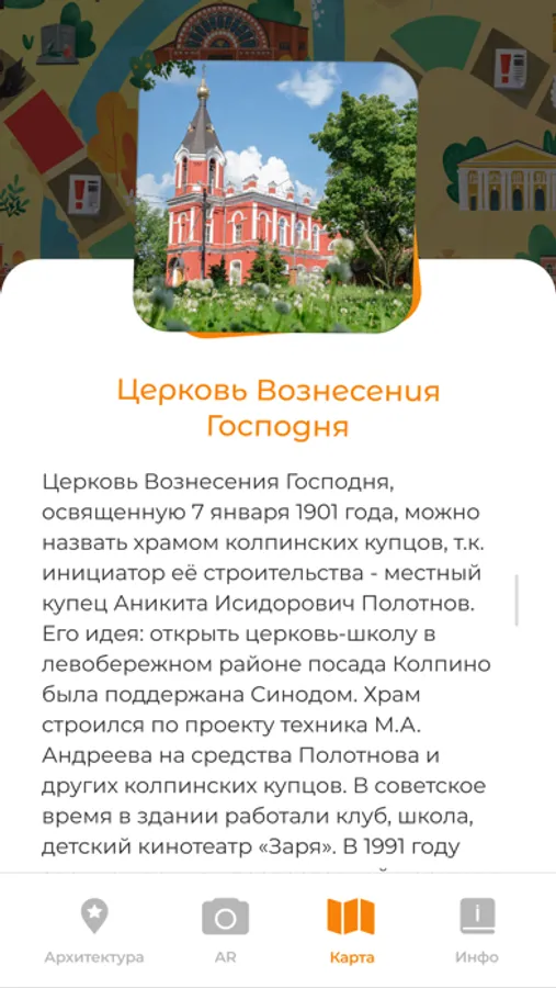 С его помощью вы сможете узнать о самых интересных местах города и ключевых моментах в его истории, а также рассмотреть интерактивную карту города.