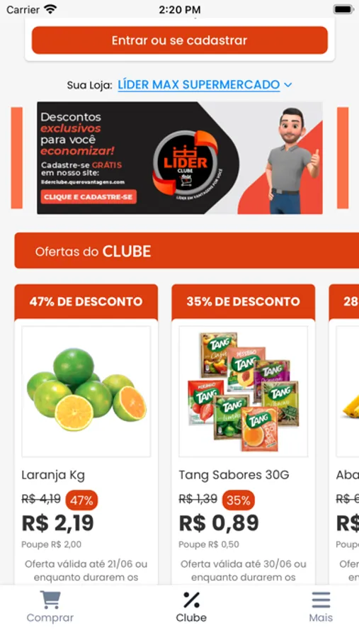 Com o aplicativo do Grupo Líder Max você tem acesso aos descontos exclusivos do Clube onde estiver. E ainda pode adicionar os seus itens preferidos a uma lista de compras ou criar uma lista de itens favoritos para acompanhar se entram em oferta.