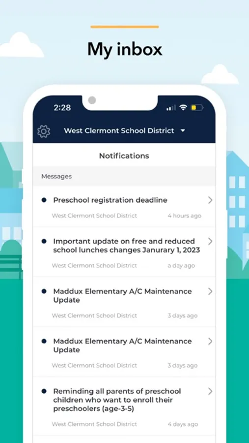 * Inbox - Receive notification of important updates and messages from your child’s school.