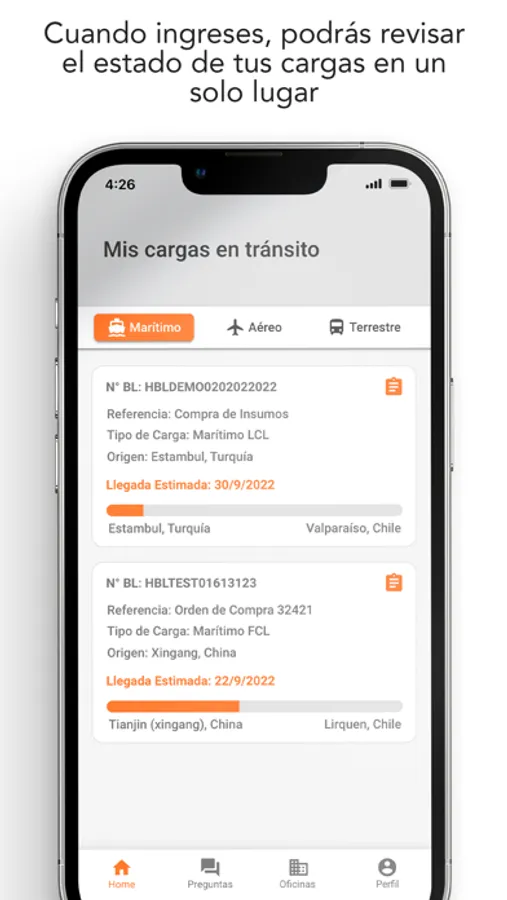 - Visualiza el documento de transporte de cada una de tus cargas.