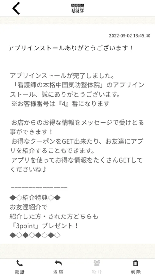 看護気功整体のアプリをSNSを通じてお友達に紹介する事ができます。