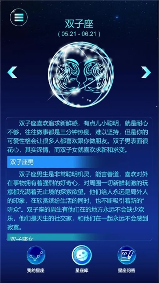 《星座游戏-北斗》应用有星座的所有相关知识,星座运势包含水瓶星座双鱼星座白羊星座金牛星座双子星座巨蟹星座狮子星座处女星座天秤星座天蝎星座射手星座摩羯星座大全。新鲜有趣的星座运势测算大全,全面解析你的每日、每周、每月和全年的星座运势,提供分析简评、工作分析和财富分析,把握星座运势前程!星座每天更新,可以帮助你了解每个星座的每日,每周,每月的运势变化。