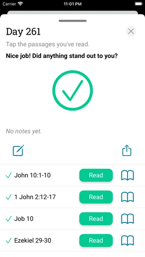- Share with a friend. Share what you've read with a friend or accountability partner. Optionally include your notes.