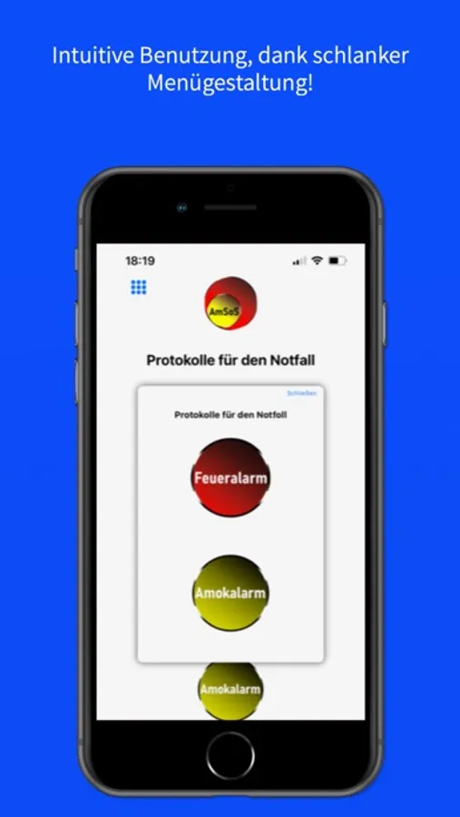 Gefahren erkennen, Teilnehmer:innen informieren und damit Leben retten. Mit der AmSoS App haben Lehrende in Bildungseinrichtungen den Notfallalarmknopf immer in ihrer Nähe und können somit sekundenschnell auf lebensbedrohliche Gefahren in Bildungseinrichtungen hinweisen/reagieren. Durch die dezentrale Steuerungssystematik der App werden alle Lehrende einer Bildungseinrichtung per Signalton sowie einer Mitteilung auf die jeweilige Situation aufmerksam gemacht. Damit entfällt das Suchen und Hinlaufen zum festgesetzten Notfallknopf.