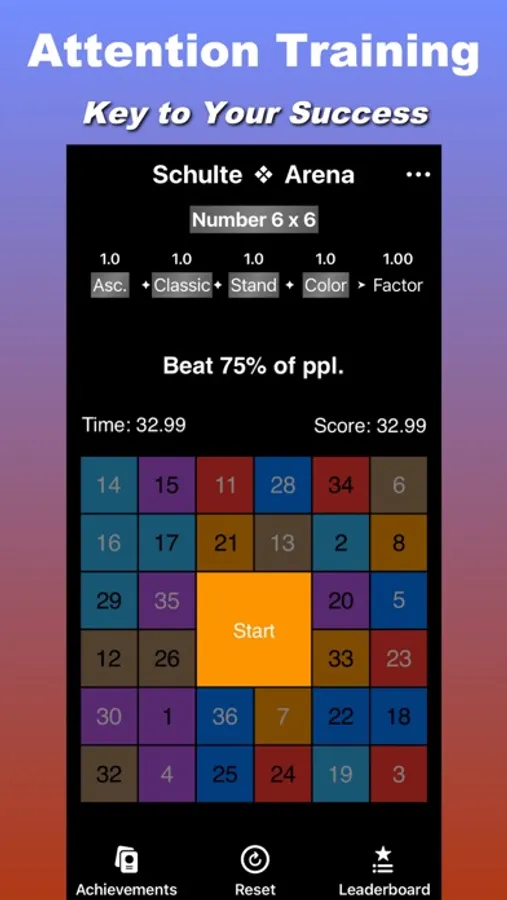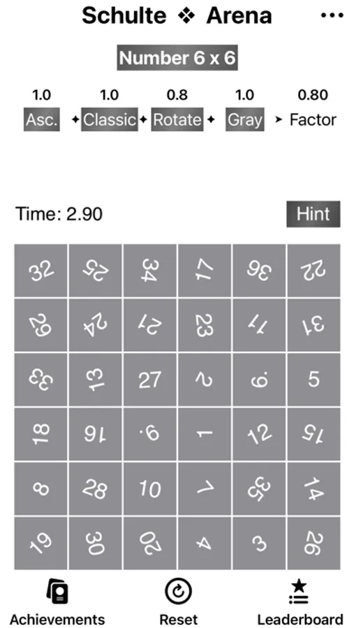 Schulte Table is a simple and effective brain training tool. It can measure attention levels, and train your memory, attention and rapid reading skills.