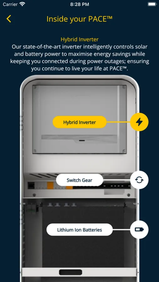 PACE™ is the heartbeat of your Wetility solar solution, consisting of a hybrid inverter, lithium-ion batteries and switchgear. PACE™ is intelligently designed to control the energy flow to your home or business and manages load shedding and switching schedules.