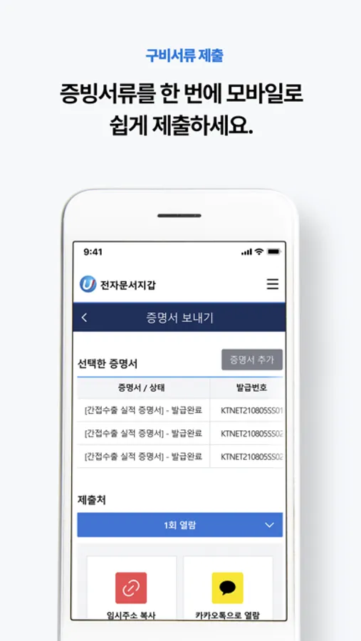 - 각종 디지털 증명문서의 발급신청(구매확인서, 간접수출실적증명, 시험성적서)
