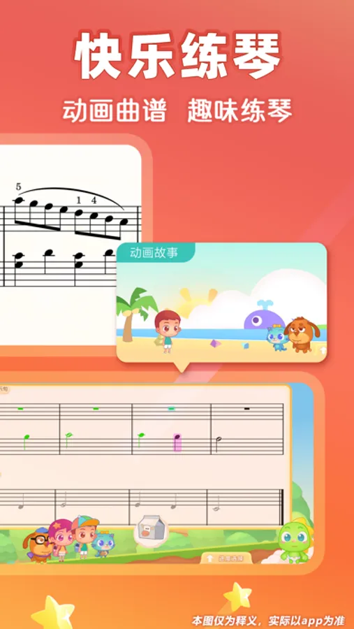 以动画的形式展现曲谱内容,边玩边练,提升练琴乐趣,降低练琴的枯燥性