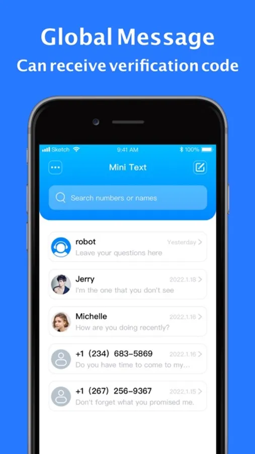 Mini text has cross platform messaging capability, which allows you to send messages to real numbers in any country without constraints
