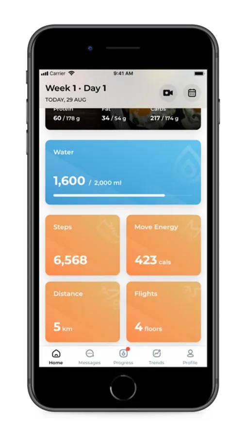 The app integrates with Apple Health to show your daily activity - distance, steps, active energy, and flights to help you better achieve your goals.