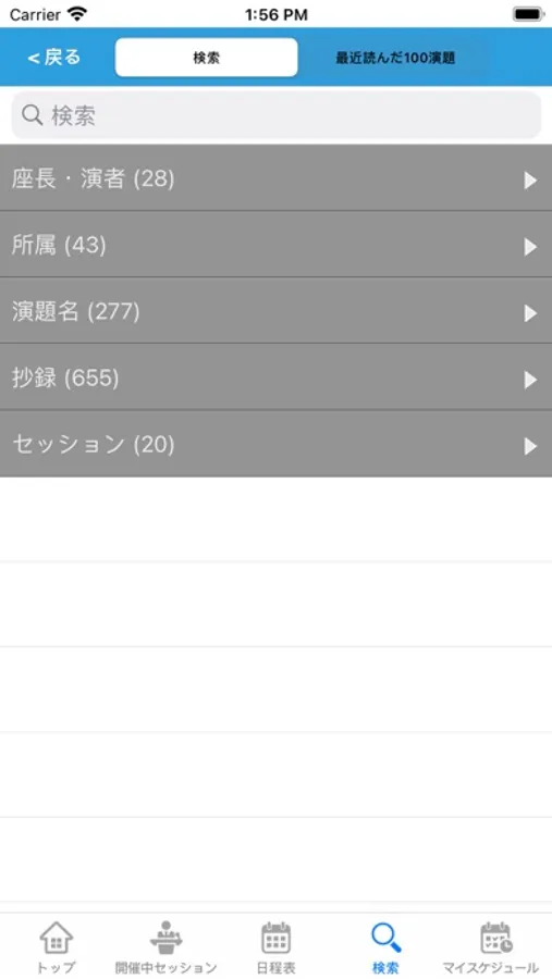+ カテゴリーごとにプログラムの講演スケジュールを検索、確認できます。