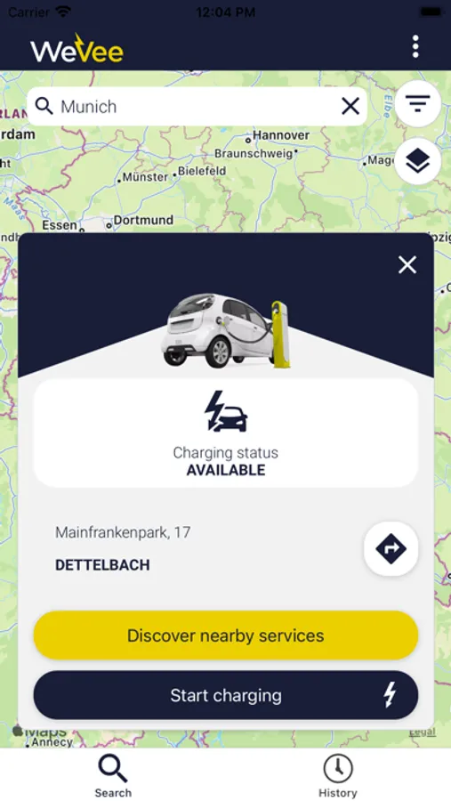 The WeVee app is your ultimate solution for electric vehicle charging. With live updates on all your preferred charging stations, you'll always know which ones are available. Whether you're planning a trip or searching for an available charger nearby, you can easily filter to find the charging station that best suits your needs - from free charge points with compatible connectors to rapid chargers with local amenities.