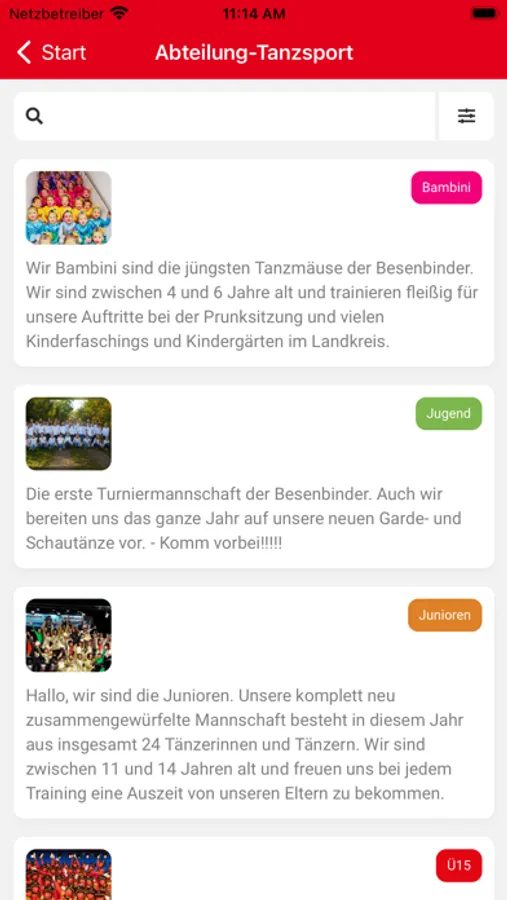 Die Besenbindder Vereins-App bietet Ihren Mitgliedern, Tänzerinnen und Tänzer, Fans und Eltern eine Kommunikationsplattform wenn es um den Karneval-Club Röttenbach "Die Besenbinder" geht. Ihr gewinnt interessante Einblicke in alle Abteilungen, Trainingszeiten, Hallenbelegungspläne und könnt über Pushnachrichten aktuelle Bilder und Ergebnisse von Turnieren oder Auftritten empfangen. Neben allen Veranstaltungen und Terminen der Besenbinder findet Ihr Sponsor- und Bonusprogramme für alle Mitlgieder.