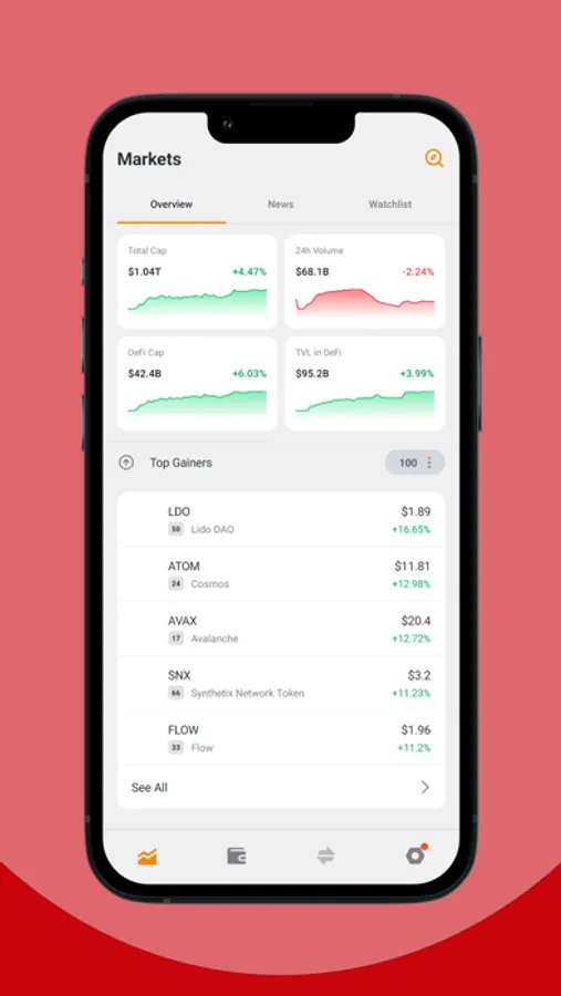 - Investment Oriented Wallet >> Sole wallet brings unmatched cryptocurrency market analytics to your device: advanced sorting, curated categorization, extensive filtering, and event-based alerting features.