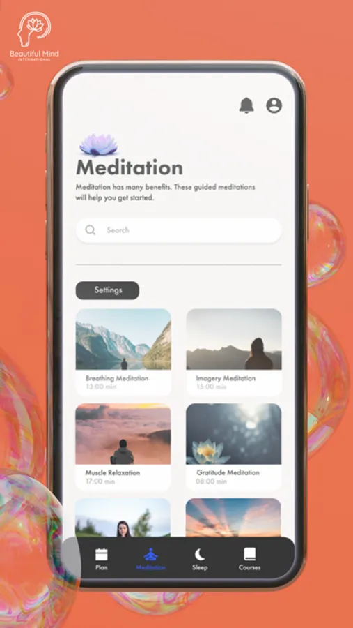 Every level of expertise and lifestyle may benefit from guided meditation. You can start from short 5-minute sessions to fit into your hectic schedule or longer meditations to establish your daily aims. Beautiful Mind may help you find balance in your daily life in only a few minutes a day.