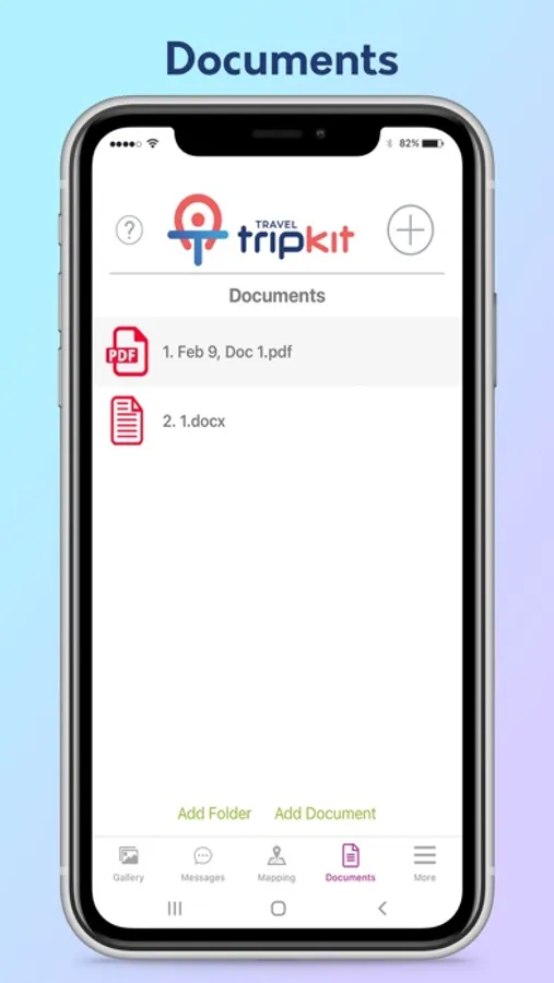 As another communication feature, group leaders can load documents like the itinerary, rooming list, assignments, anything on a PDF, Word doc, or an Excel spreadsheet.