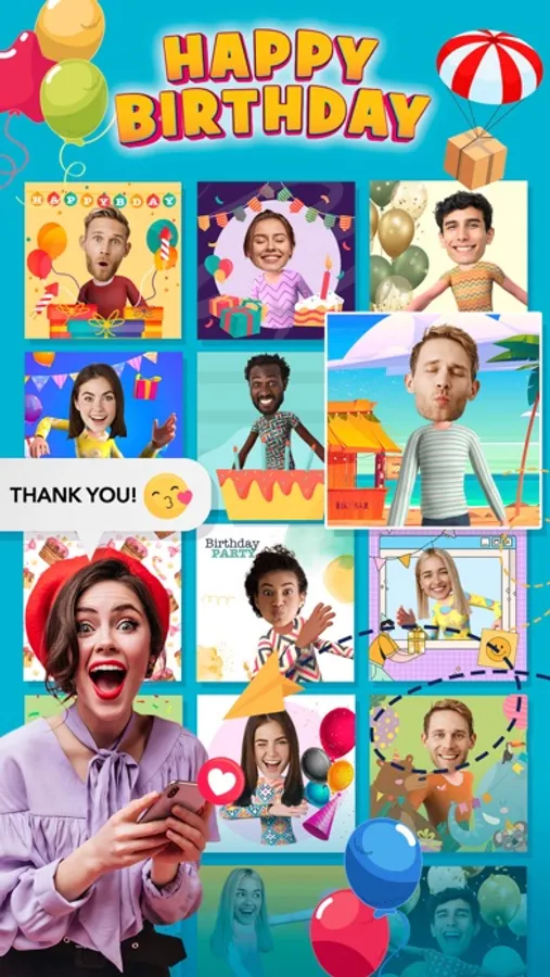 With our animated birthday card maker, your recipient will get the ecard within minutes. Choose a template that matches your idea, add your photo with your face and share it with your loved ones! Send heartfelt wishes. Remember this special day with these designs that are perfect for all!