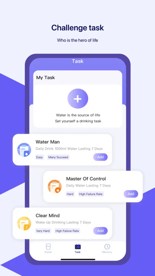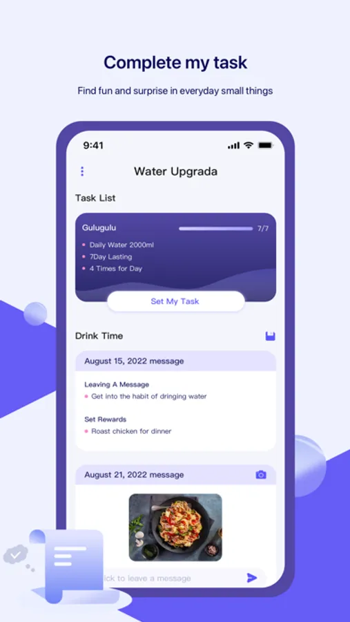 Water drinking task, set your water drinking task, and set some small rewards after completing the task yourself. After clocking in the process of the task, you will get a sense of achievement to challenge yourself after completing the task, just like the warrior in the comic book who keeps upgrading, defeats the demon king, and then obtains the treasure box.