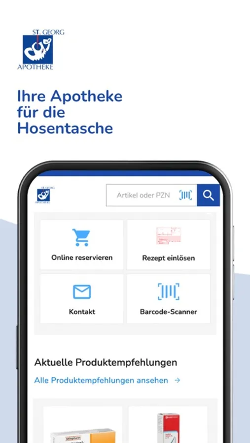 Die St. Georg-Apotheke Heide für die Hosentasche: (E-)Rezepte und Medikamente einfach online bestellen.