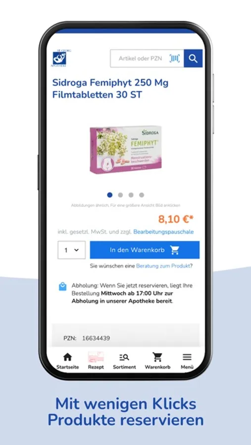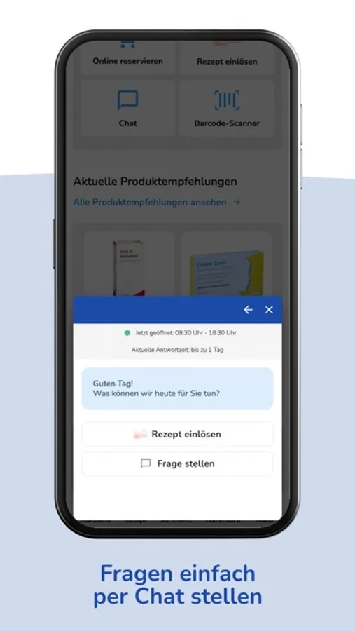 Wir bieten Ihnen über die App unser gesamtes Sortiment. Nicht sofort verfügbare Produkte bestellen wir für Sie und machen Sie in der Regel bis zum nächsten Werktag abholbereit. Gerne liefern wir Ihnen Ihre Bestellung per Botendienst direkt nach Hause.