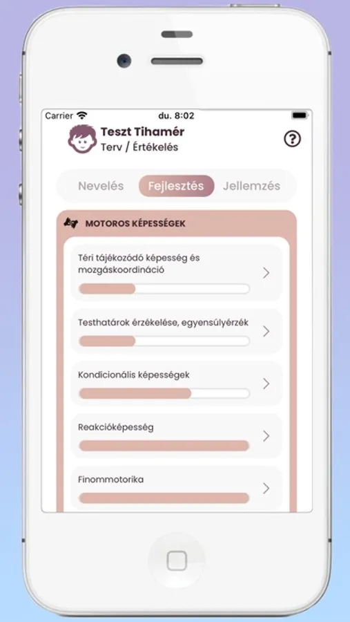 - a gyermekek fejlődésének követésében,