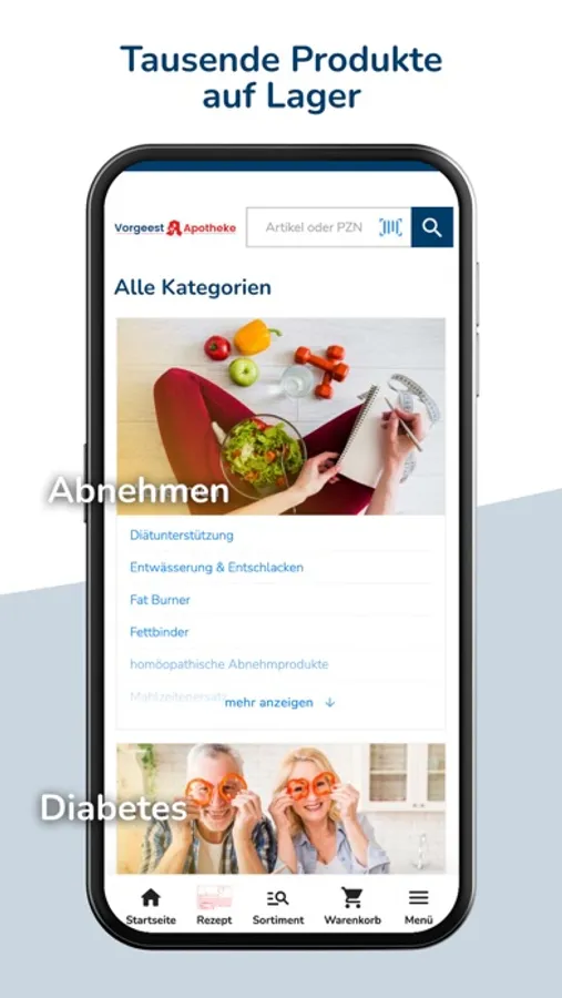 Wir bieten Ihnen über die App unser gesamtes Sortiment. Nicht sofort verfügbare Produkte bestellen wir für Sie und machen Sie in der Regel bis zum nächsten Werktag abholbereit. Gerne liefern wir Ihnen Ihre Bestellung per Botendienst direkt nach Hause.