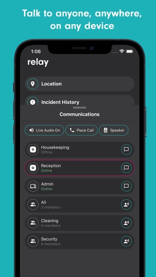 Relay - Connect your team. Track your performance. Impact your bottom line. 2-Way Communication, Panic Button, GPS Tracking, Work Tracking. Relay is the radio that does everything your walkie talkie can't.