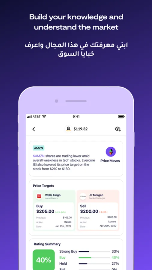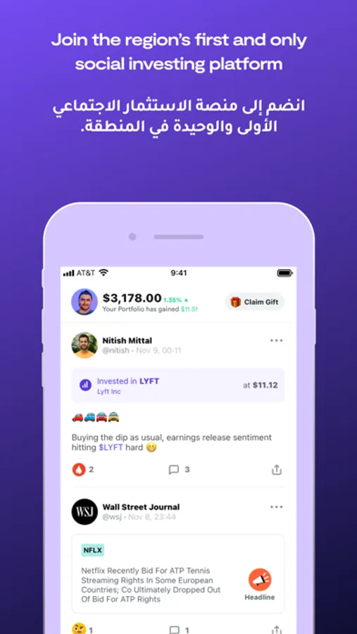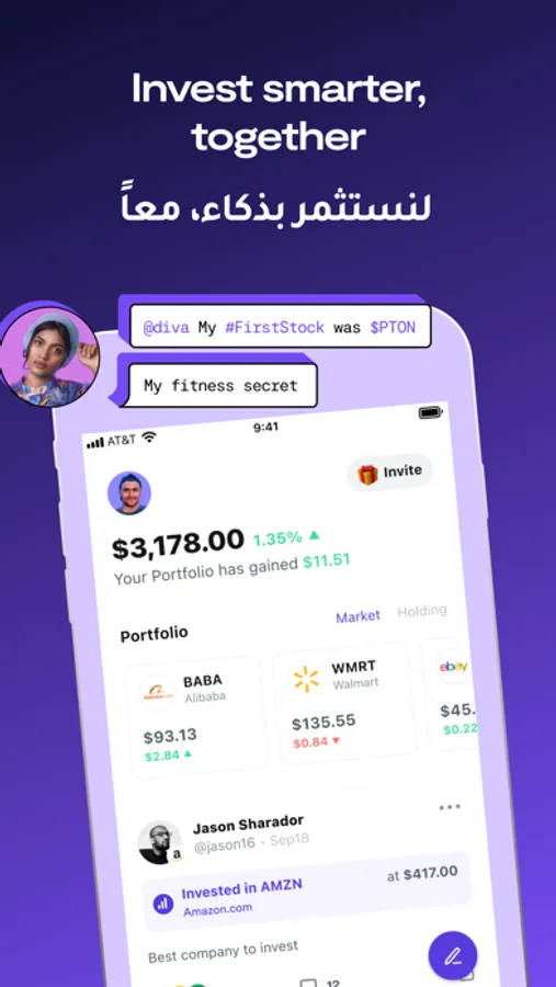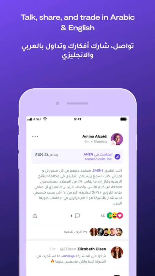 Exchange your thoughts and ideas, share strategies and trade your favorite US stocks and ETFs with a choice of Arabic and English versions.