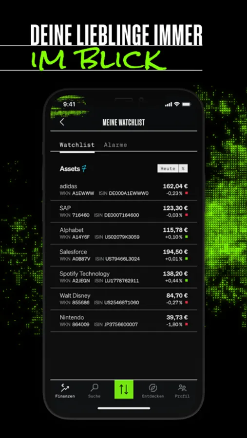 - Watchlist: Behalte spannende Aktien mit der Watchlist im Blick