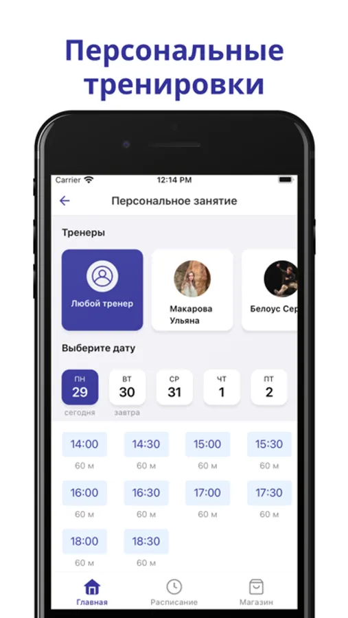 - записаться на тренировку;