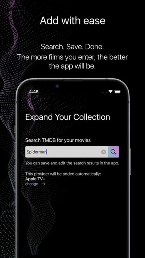 You can easily add your movies. Once that's done, you can search your collection and filter according to various criteria.