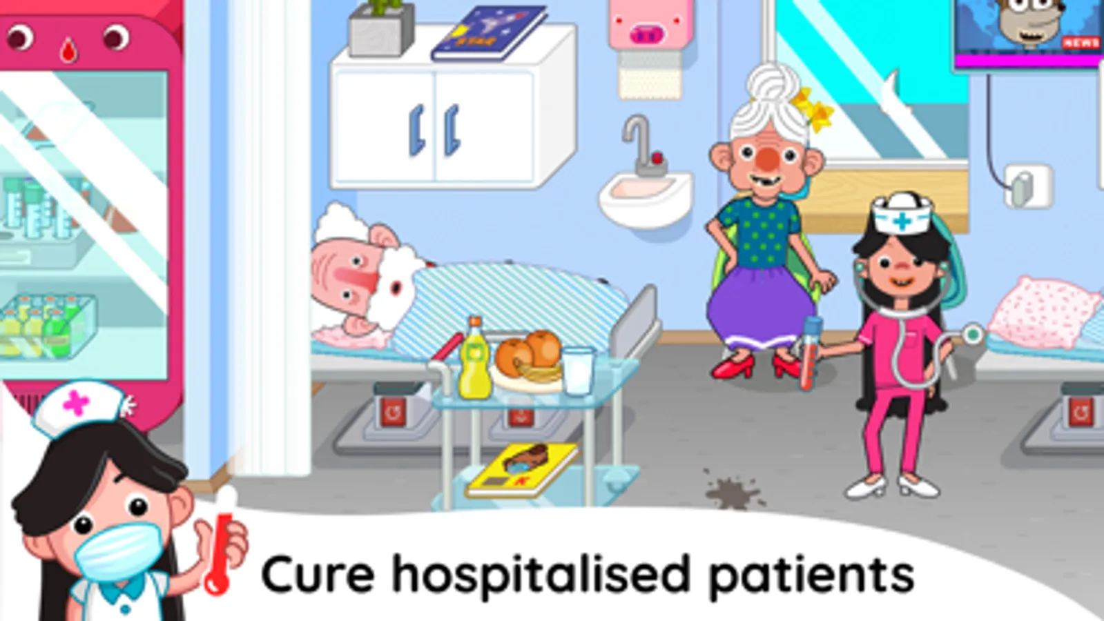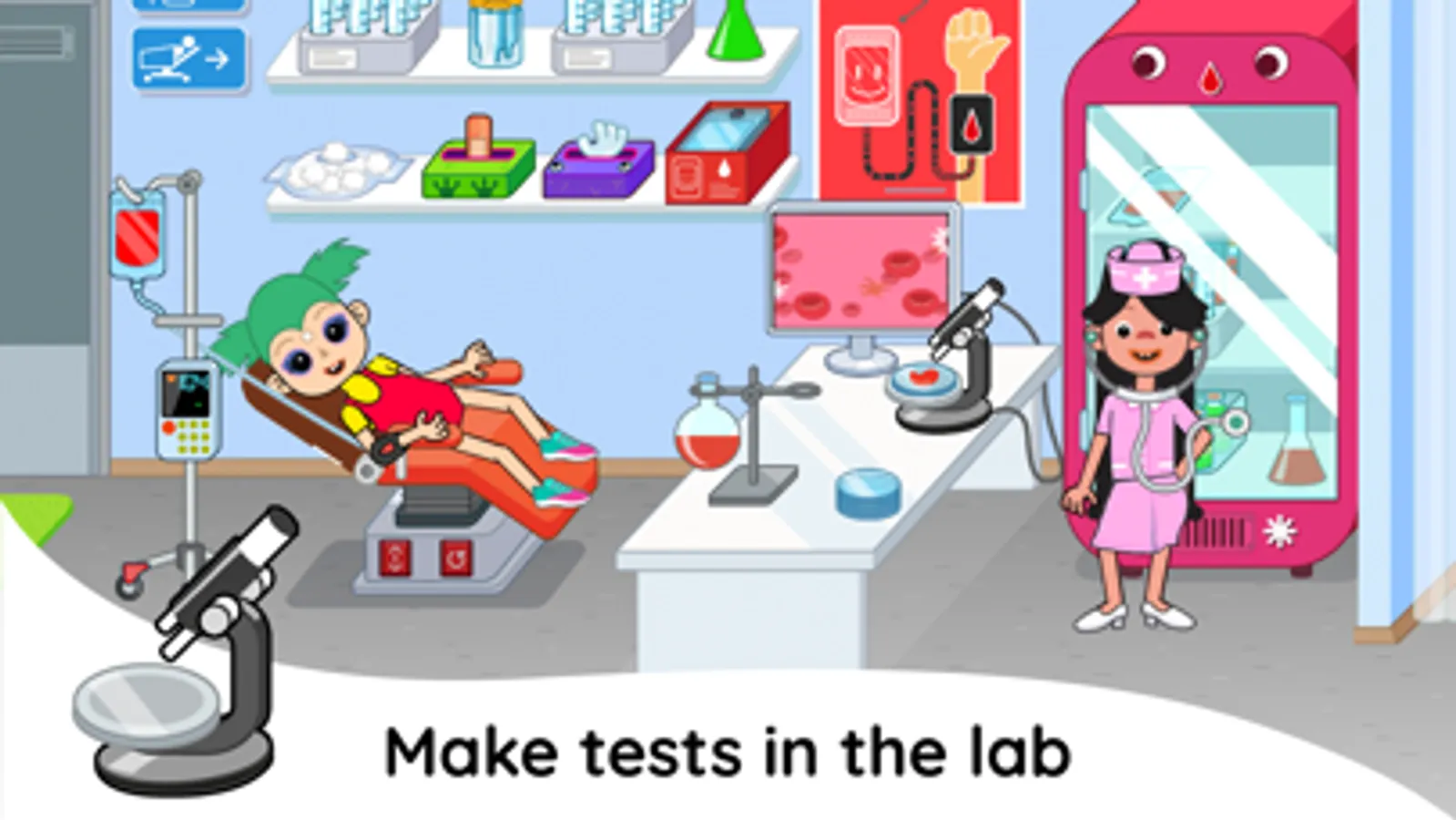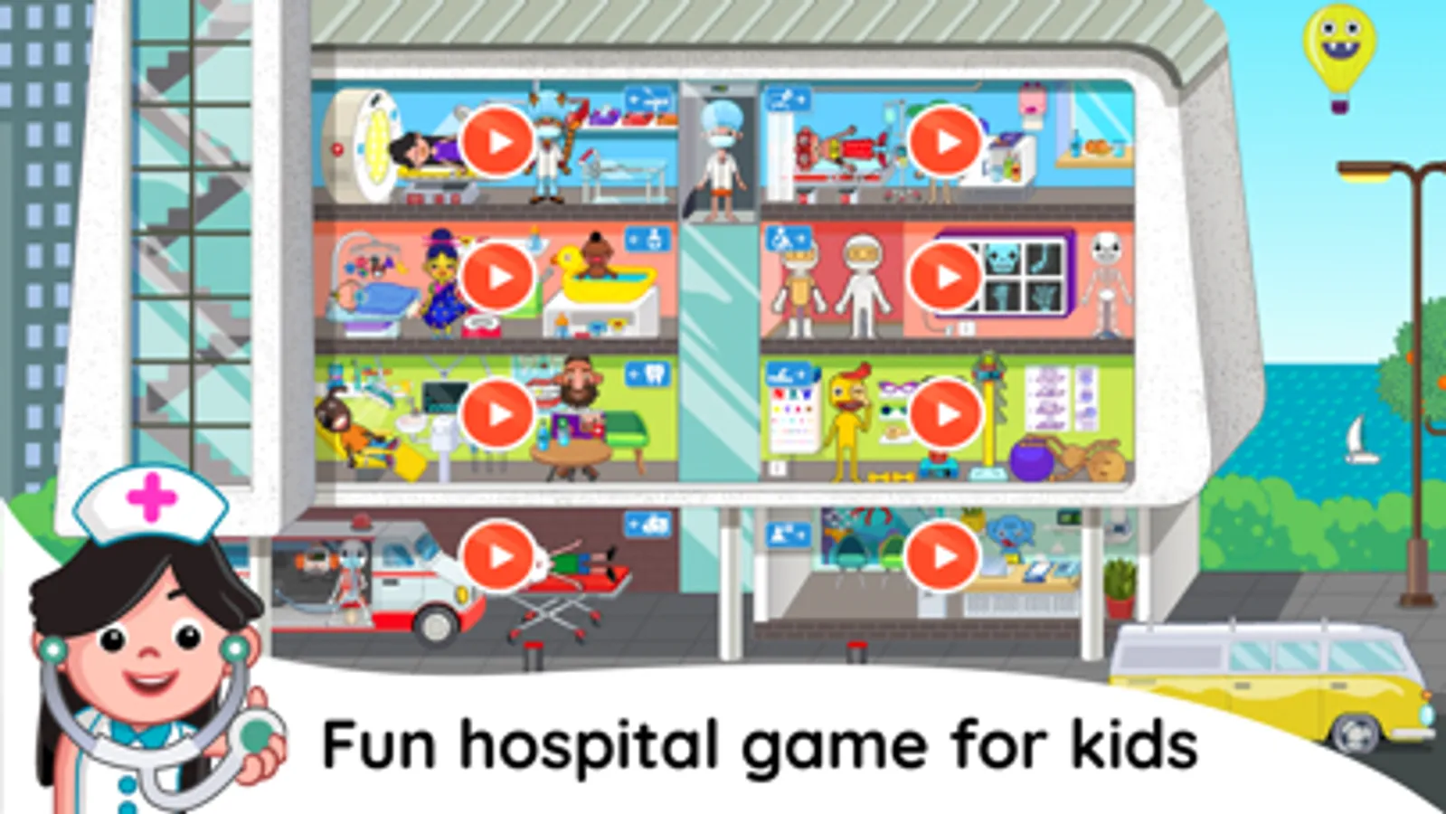 A busy hospital opens the door to its new visitors! Welcome to the game where you can become a doctor, a patient or just a curious explorer! The game offers a player multiple activities, numerous medical items and equipment to play with - 4 floors of fun an exciting are play. Join bright characters in their workplace - meet the emergency crew with new patients, treat them, perform full-body scanning, conduct cardio-check, make tests in the lab, or enjoy your break in cafeteria - learn about routines in hospital daily life.