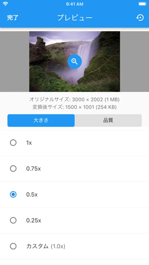 Downsizeは画像の縮小に特化したアプリです。簡単な操作で画像を縮小できます。