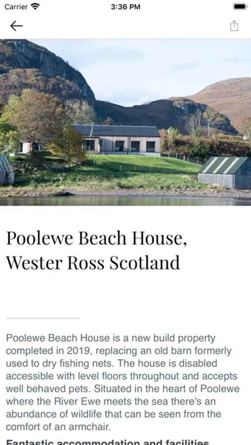 Poolewe Beach House is a new build property completed in 2019, replacing an old barn formerly used to dry fishing nets. The house is disabled accessible with level floors throughout and accepts well behaved pets. Situated in the heart of Poolewe where the River Ewe meets the sea there's an abundance of wildlife that can be seen from the comfort of an armchair.