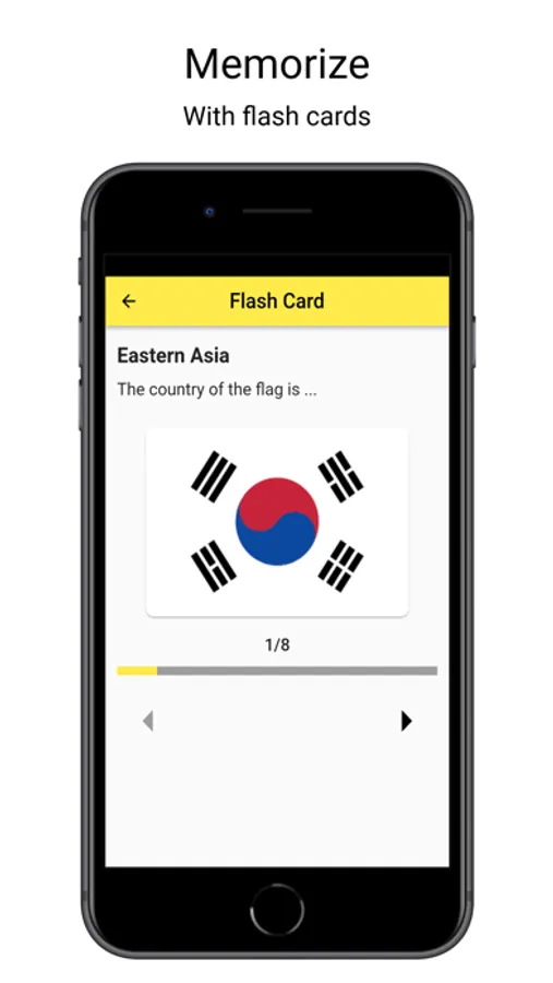 Flag Card is a mobile app substitute for paper flash cards, used for memorizing flag names of the countries all over the world. The flags and country names are collected based on region and sub-region of the world.